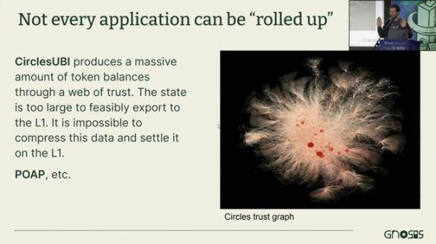 对于这个论点,Martin Köppelmann 举例表示,例如 CirclesUBI、POA 创造了很多状态,这些状态无法被压缩,所以 L2 对它们没用。
