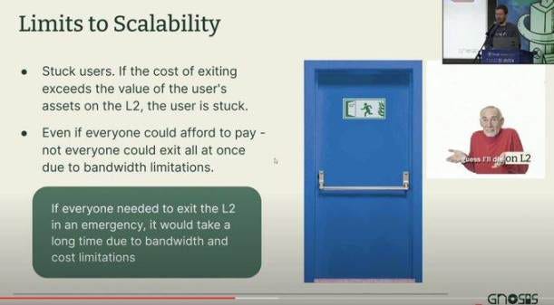 Martin Köppelmann 认为 L2 中小额资产可能不够支付退出的 Gas 费;因为退出的带宽有限,如果大家都想出去就会被卡住。