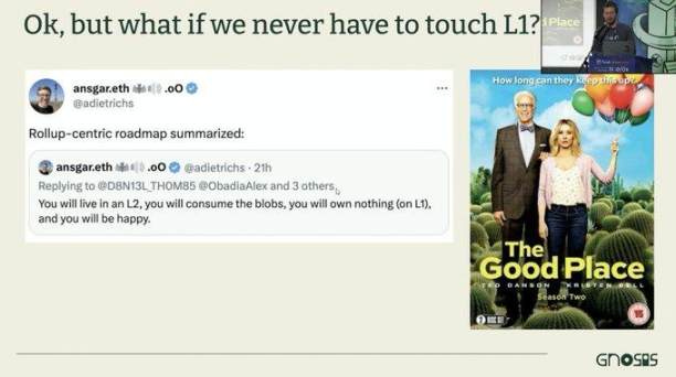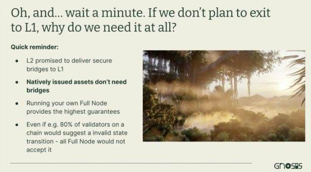 Martin Köppelmann 解释,L2 之所以安全,是因为从 L1 继承了安全性,可是你都不要 L1 了,为什么非要 L2 呢。