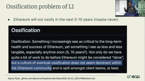 Martin Köppelmann 提到,以太坊 L1 本身还在进化中, 往后 5-10 年还会做许多修改,这就给 L2 带来许多挑战。