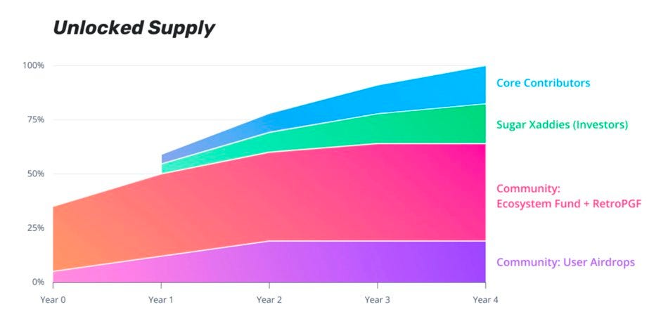 Optimism:大约 5%的 OP 供应已通过空投的方式解锁,当前流通量大约是 42.9 亿 OP 总供应量中的 2.15亿。