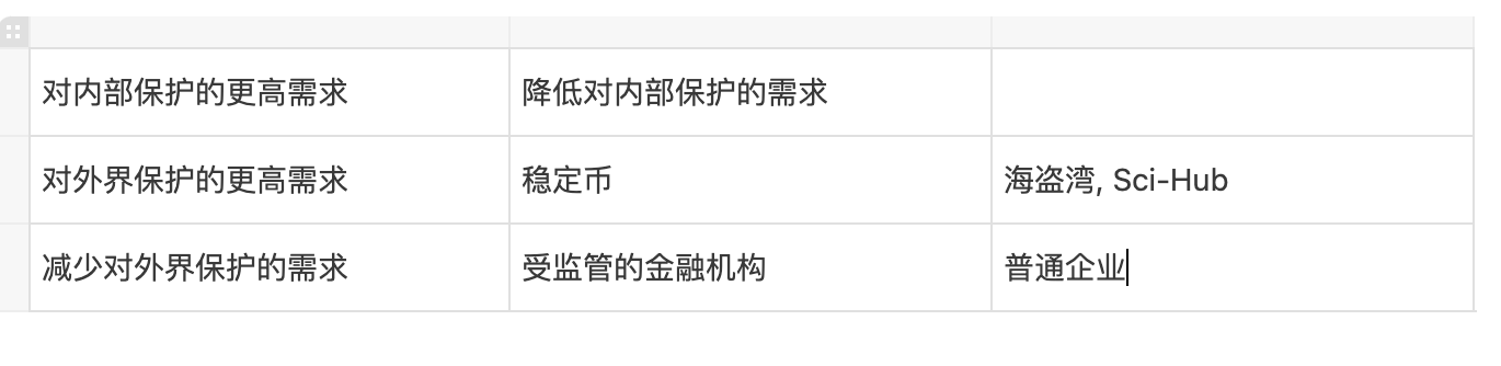 从用户的角度来看,这三种类型被安排在效率和弹性之间的权衡范围内。USDC 今天有效,明天几乎肯定会有效。但从长远来看,它的持续稳定性取决于美国的宏观经济和政治稳定性、支持向所有人提供 USDC 的持续美国监管环境,以及发行组织的可信度。